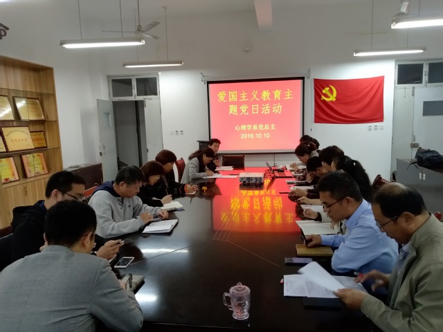 2019年10月10日,心理学系党总支组织全体教工党员在系会议室观看了《厉害了我的国》专题节目,活动由心理学系党总支书记刘宪亮主持。