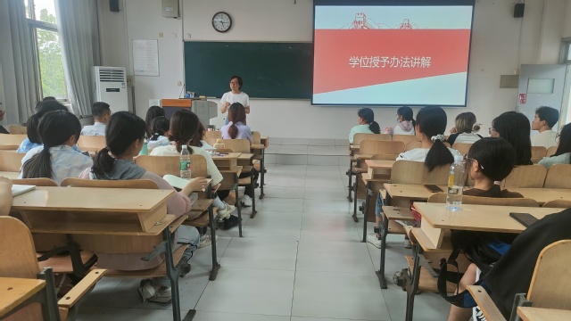 会议分三项进行,首先,杨振就宿舍居住环境提升工作进行安排,他围绕宿舍安全、宿舍和谐、宿舍文化“三个建设”,强调了宿舍安全的重要性,宿舍文化建设的必要性,并对如何构建和谐宿舍文化进行了阐释。随后,于少杰对学校《普通全日制本科学生学士学位授予工作细则》进行解读,她从大学生的学分构成、学籍管理和毕业要求等方面进行了详细的讲解,通过讲解,同学们对于如何选课、学分取得等方面有了更加清晰的理解,她要求各班级学生骨干发挥带头作用,同时将政策传达到每个同学。最后田桂香对会议进行总结,她指出,宿舍是大学生最主要的生活、学习场所,提升宿舍环境不仅能够体现大学生文明素质,也为营造良好的生活、学习环境奠定了基础,各学生骨干不断发挥先锋带头作用,创建温馨和谐的宿舍环境,提升同学们幸福感。她对《学士学位授予工作细则》相关对规定再做强调,她要求,各学生骨干务必将会议精神传达给每一位同学,学士学位授予工作是事关同学们毕业的重大工作,辅导员也要召开主题班会进行详细解读,通过全员学习《学士学位授予工作细则》,不断推动学院学风建设再上新台阶。