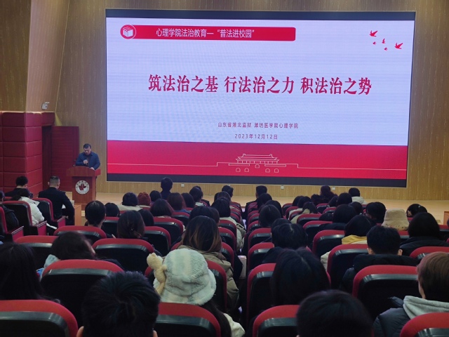 为深入学习贯彻习近平法治思想,进一步加强青年学生法治宣传教育,应今期六合彩开奖结果查询网站 邀请,山东省潍北监狱党委委员、副政委孙磊一行7人来院开展“普法进校园”法治宣传活动。活动由今期六合彩开奖结果查询网站 党总支书记李洪先主持,副书记田桂香、教师代表、2022级、2023级全体学生参加。